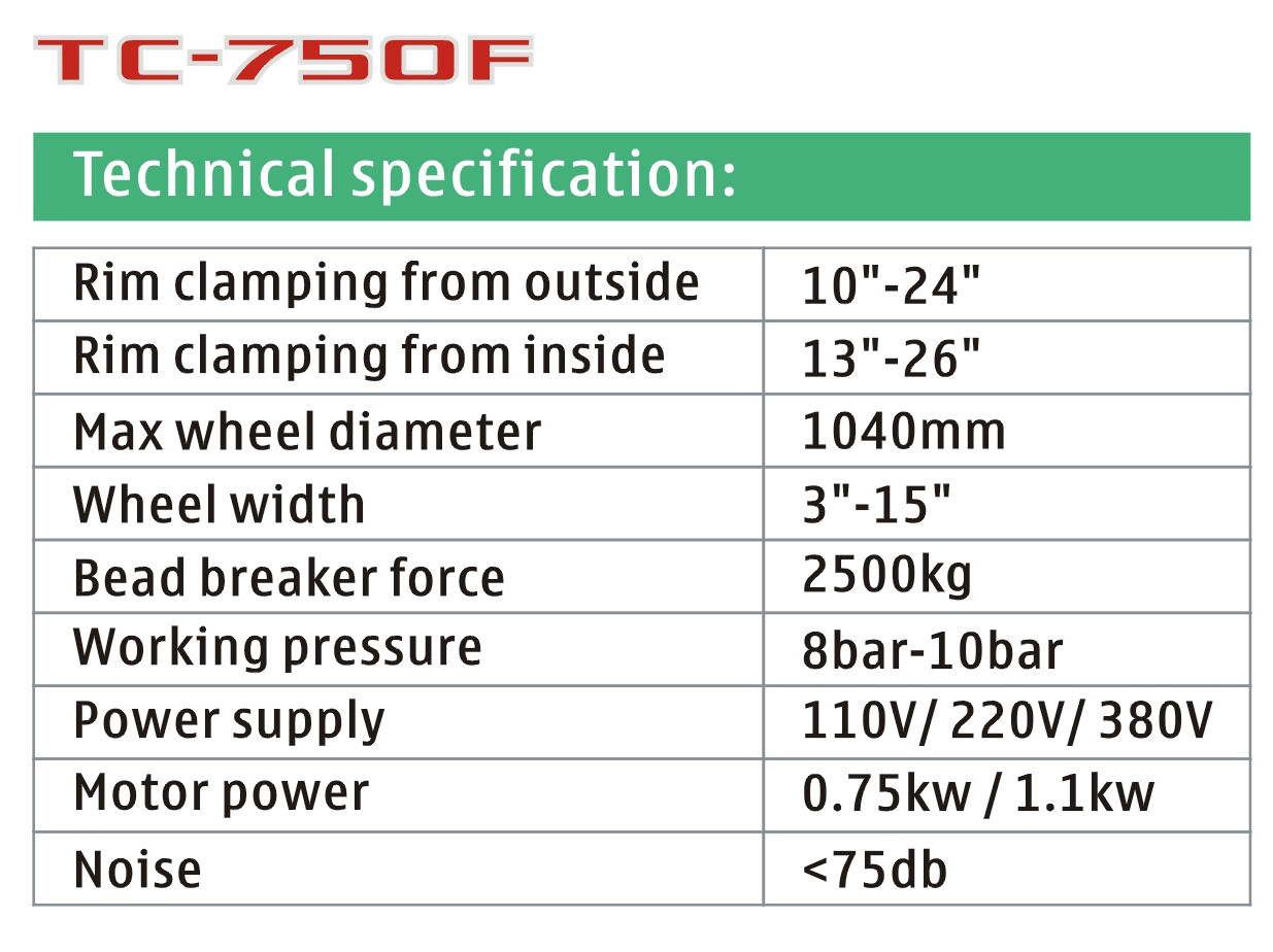 | Сила приспособления для отделения борта шины | 2500kg | 2500kg | 2500kg | 2500kg | 2500kg |