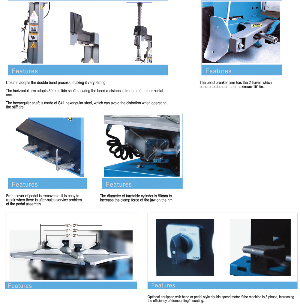 8) опционное оборудованное с рукой или мотором двойной скорости стиля педали если машина участок, то 3, увеличивая эффективность demounting /mounting.