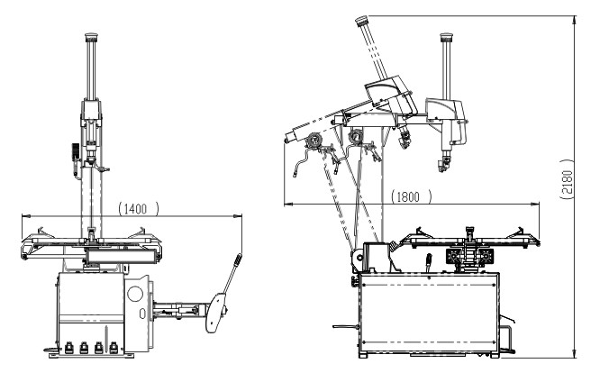 1) Автоматический изменитель автошины, наклон туда-сюда столбца и замок столбца можно завершить пневматически.