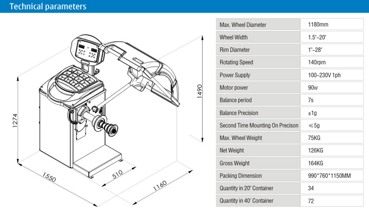Технические данные балансера колеса WB-900: