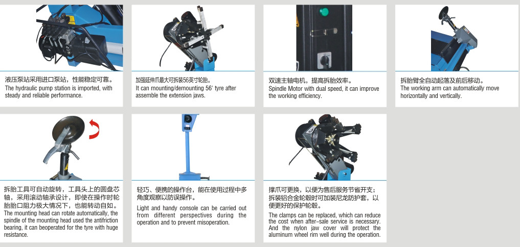 4) Оно оборудовано с гидравлическим управляемым экипажом делая автошину двигая дальше изменитель автошины без силы человека.